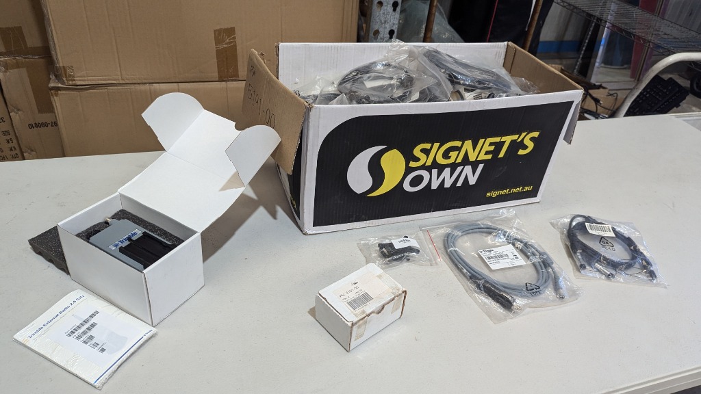 Assorted Lot, Includes Trimble External Radio 2.4 GHz, Cable 3.0m Cig Lighter to Hircise 6 Pin, Topo Shoe Prism Pole and More, Quantity Per Lot