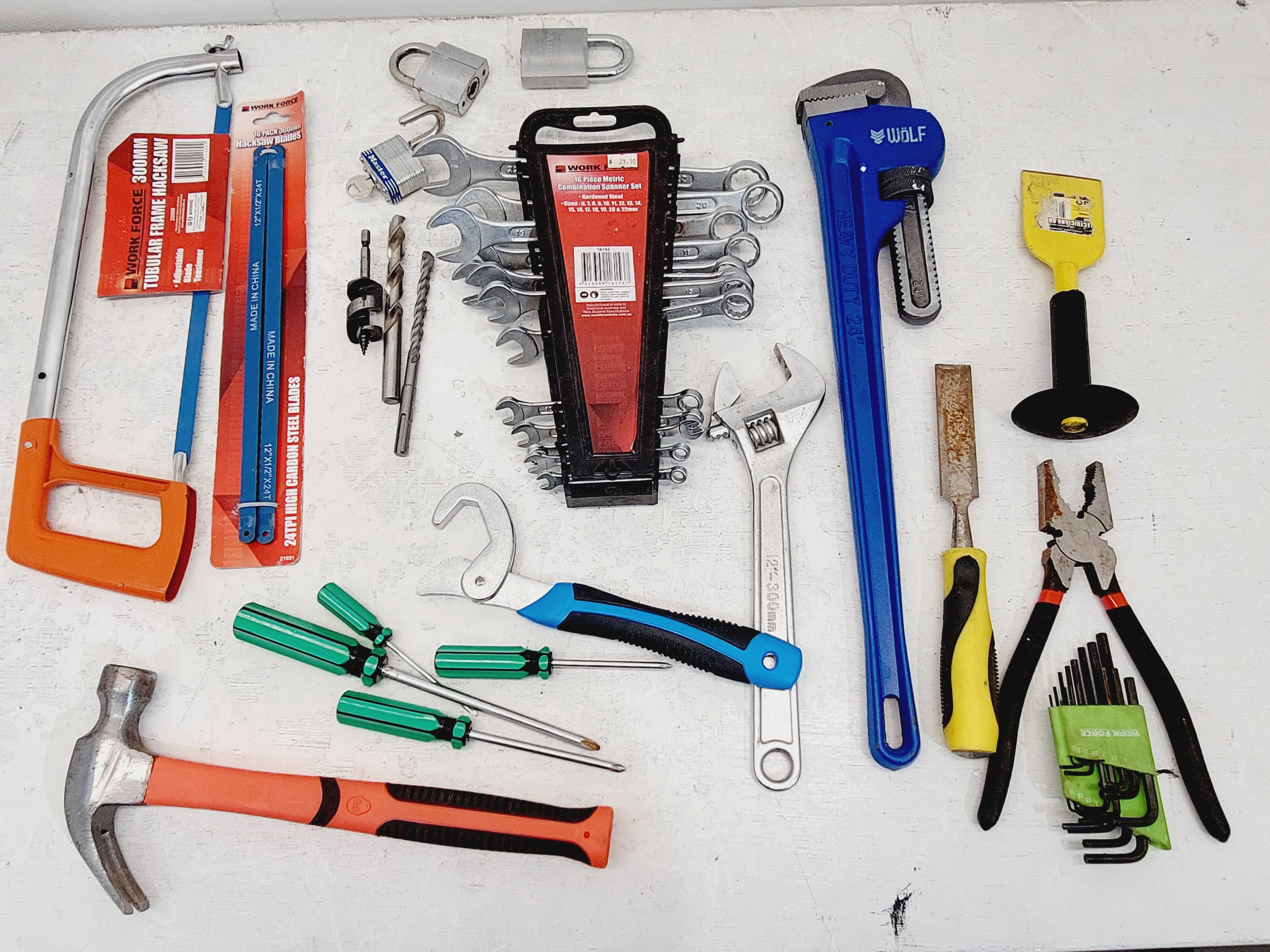 Tools, Includes spanners set, Allen keys, 24' wrench and more,Qty: Approx: 20Sold as lot