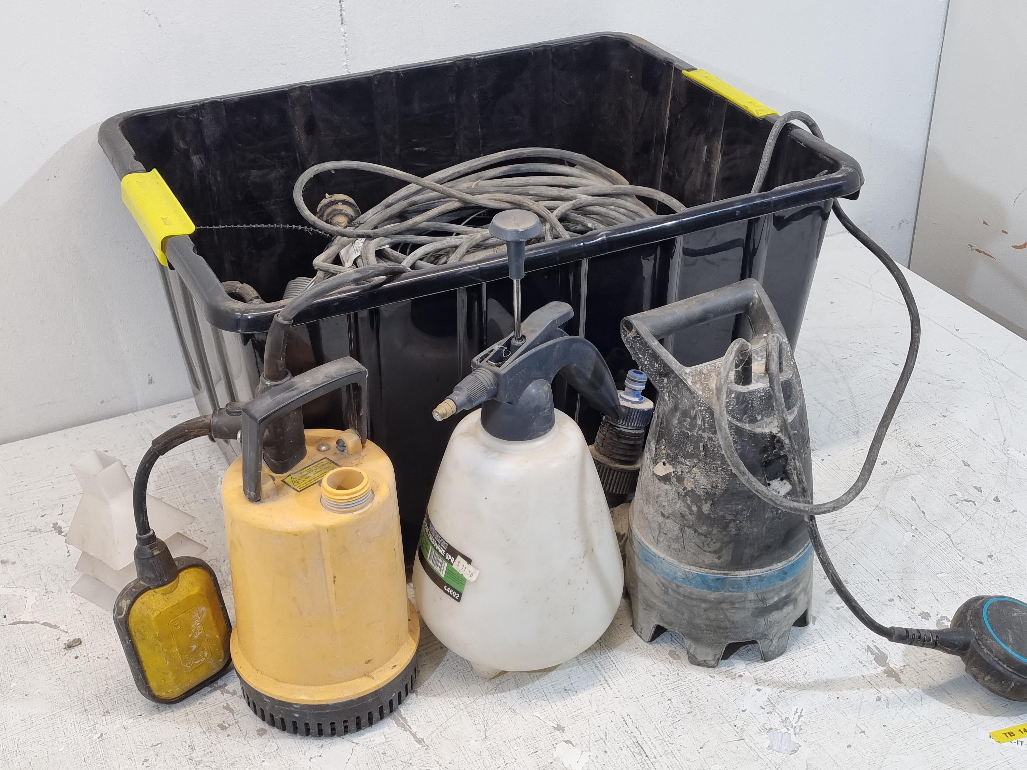 DIY accessories, includesSump pump, Davey, Model DC10-A2,Dirty water submersible pump, Gardena, 9300, and more,Container included,Sold as lot