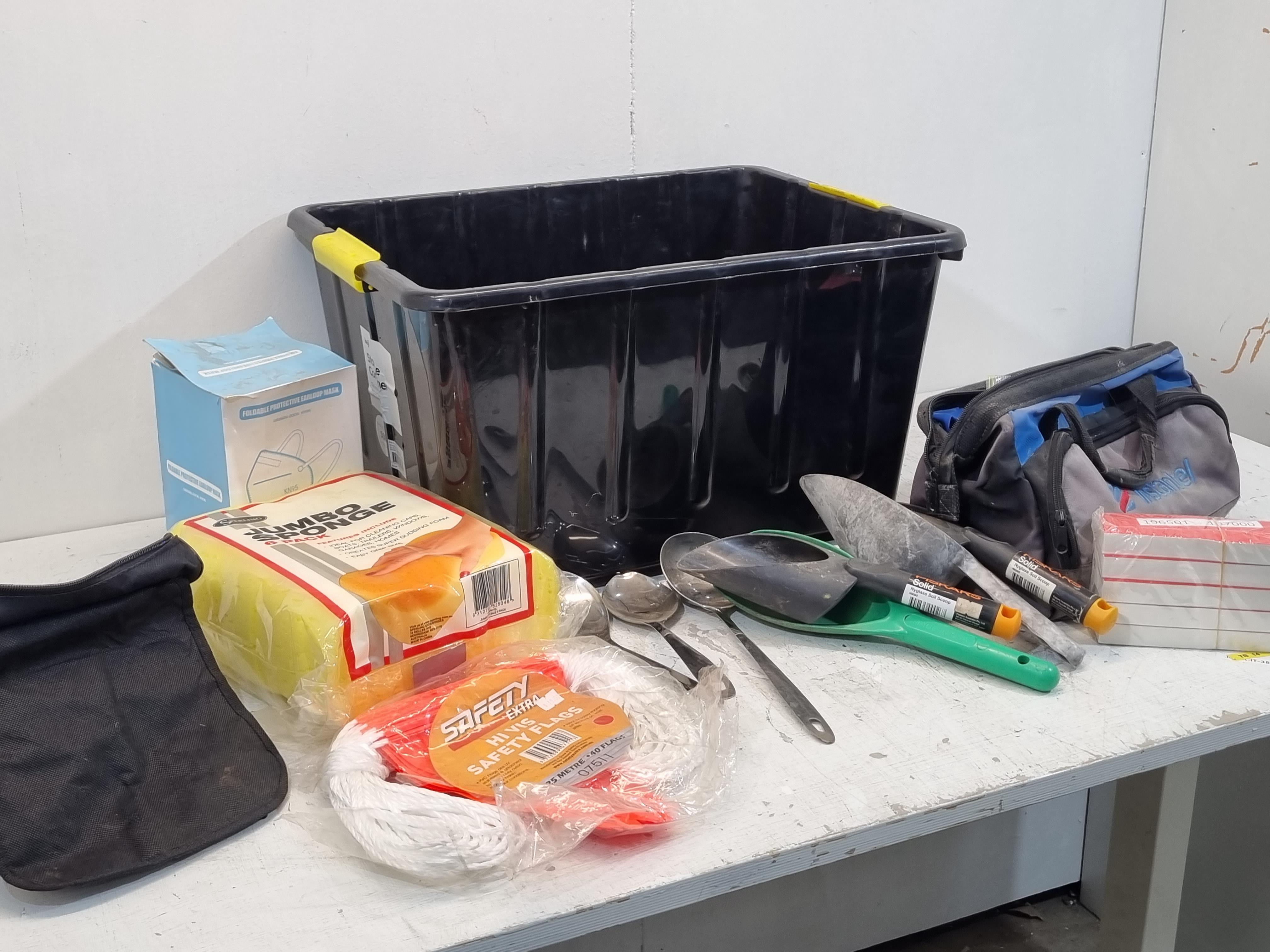 Site equipment, Includes sponges, face Masks, high visibility flags, and more,Sold as lot