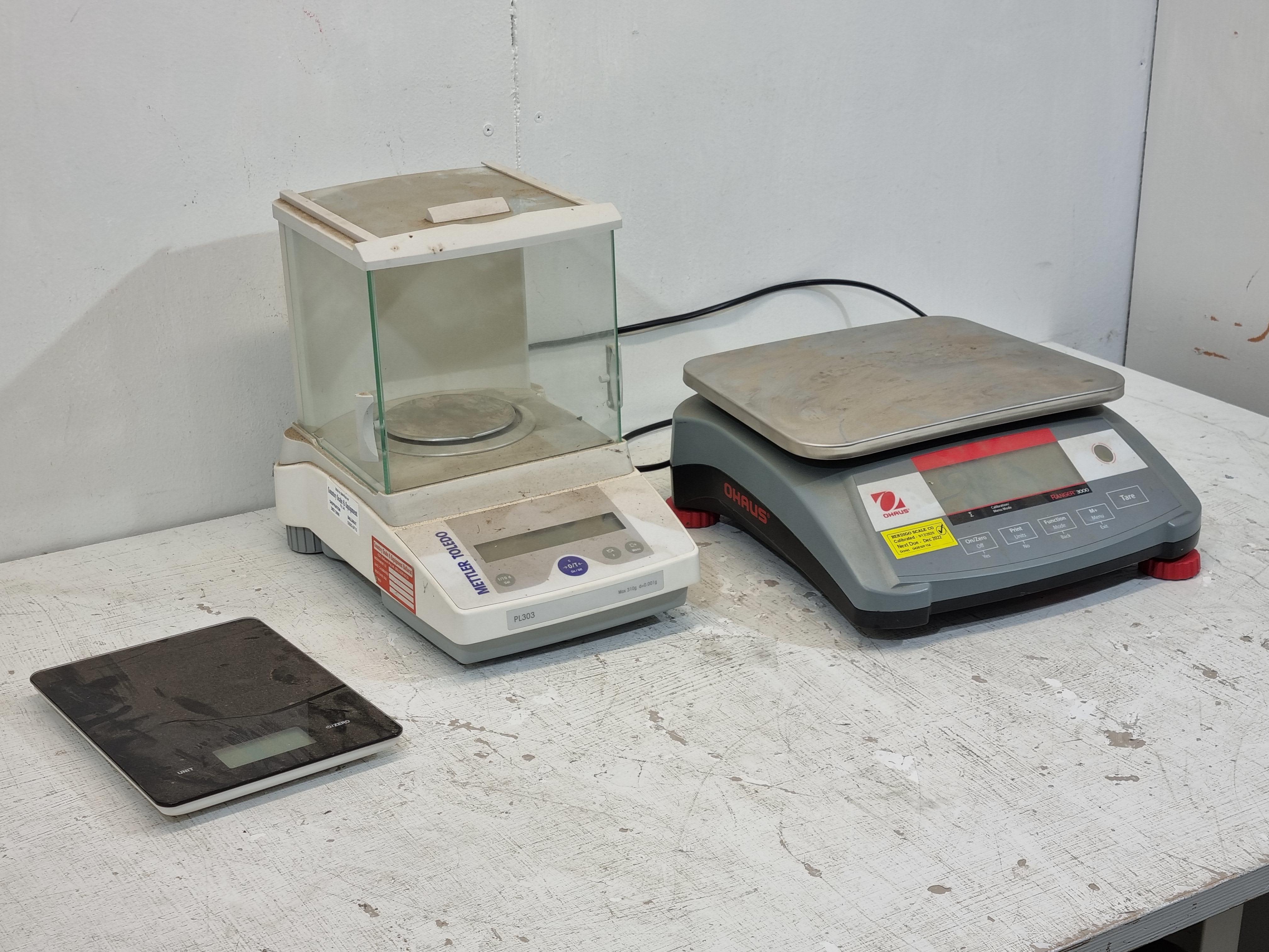 Light weight scales, Includes Ohaus ranger 3000, Model R31P15, Max 15000g,Mettler Toledo, PL303, Max 310g,Electronic kitchen scale,Qty 3,Sold as lot