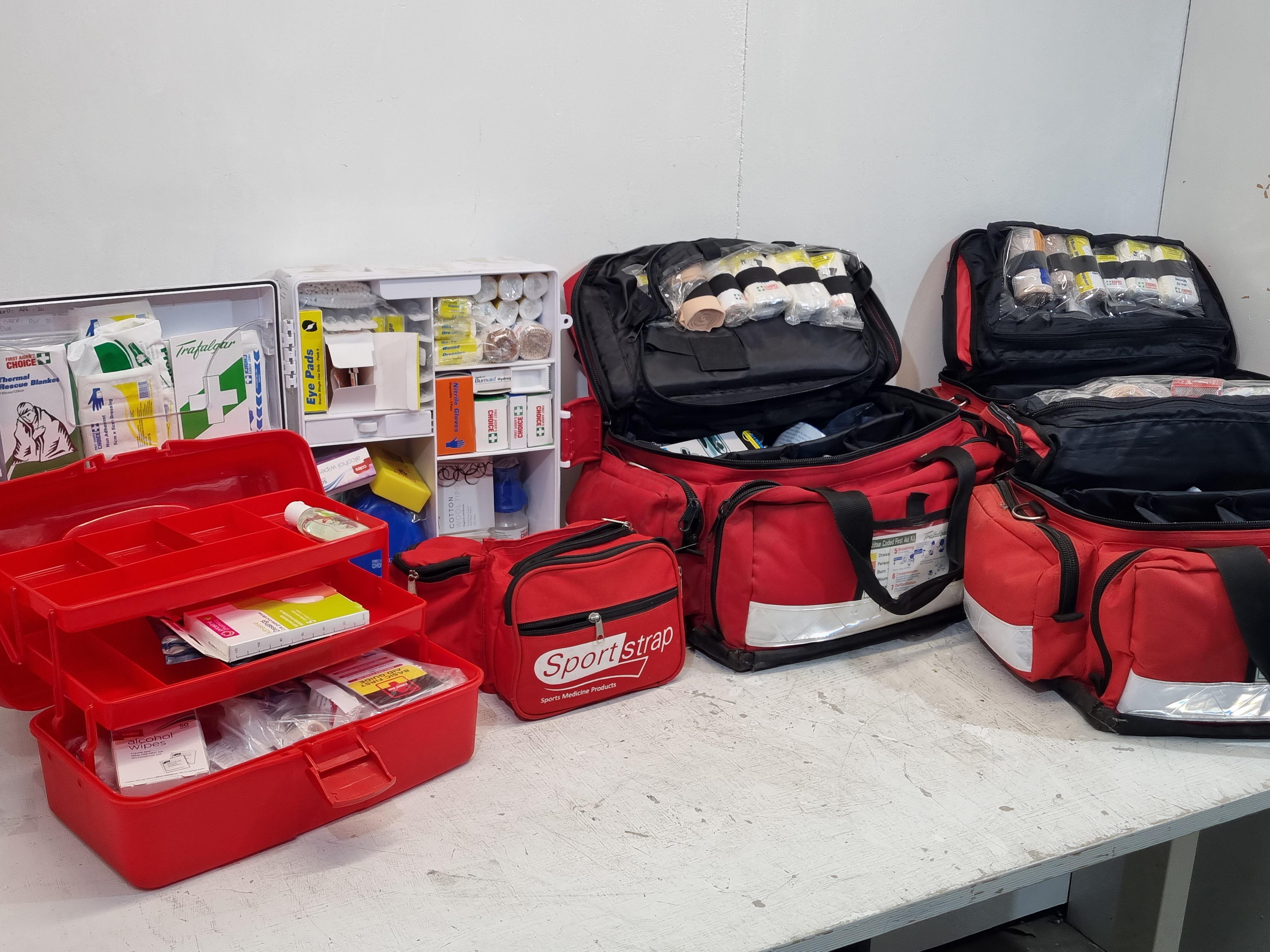 First aid kits, Includes high risk remote area soft paks, qty 3, hard case packs x 2,Nice packs are incomplete,Sold as lot