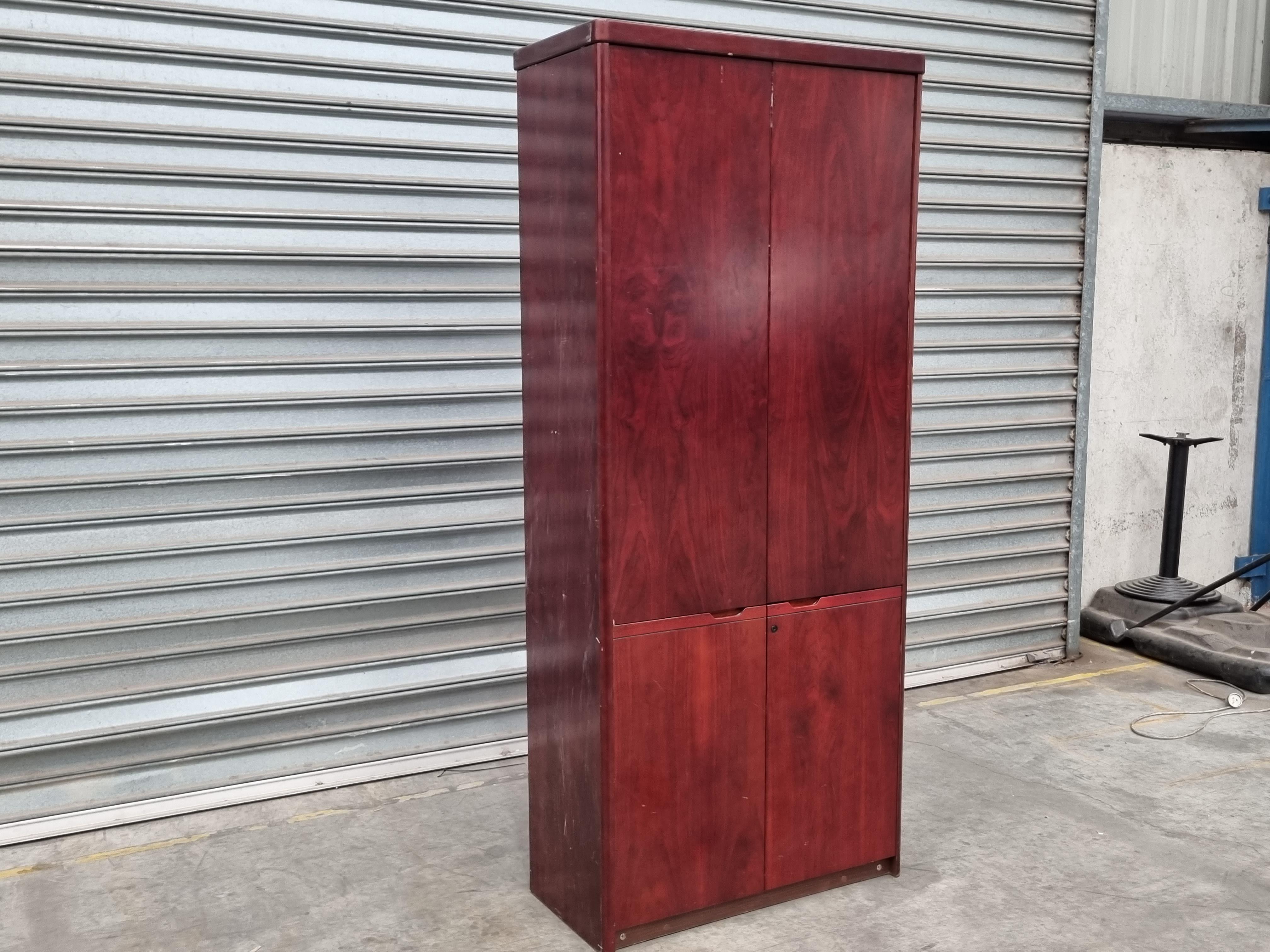 Free-standing cabinet, dark timber style, 4 door, Includes lock and key,Approx 85cm L x 40cm D x 200cm H