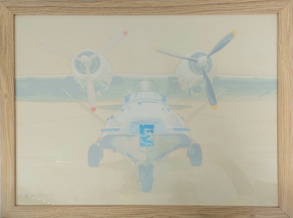 SCREENPRINT ON PAPER, FRAMED, CATALINA PLANE BY ANDREW TROLLOPE.