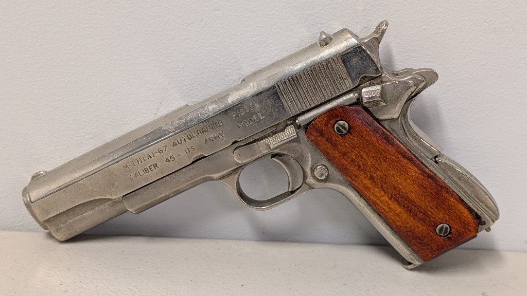 Denix Replica. Full Metal With Wooden Grips And Nickel Finish. Magazine Has Inert Rounds.