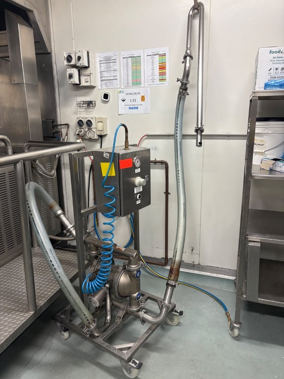 Transfer Pump, Samiforce,Graco SaniForce 1590 Air Operated Double Diaphragm PumpManufacturer: GracoModel: SaniForce 1590Type: Hygienic AODD PumpSerial Number: A2079509Graco Reference Number: 26E16ASpecifications:• Pump Type: Air Operated Double Diaphragm (AODD)• Flow Rate: Up to 100 GPM (˜ 379 L/min)• Maximum Fluid Pressure: 120 PSI (8.4 bar)• Air Pressure Range: Up to 120 PSI• Wetted Materials: 316 Stainless Steel, PTFE/EPDM elastomers• Connections: Sanitary Tri-Clamp fittings (1.5' or 2' dependent on configuration)• Design: Externally serviceable air valve, lube-free design• Cleanability: Fully drainable and suitable for CIP/SIP processes• Weight (Approx.): 30–35 kgLocation: Mawson Lakes, South Australia Contact: Ryne Aylward - 0418 449 819 or [email protected]