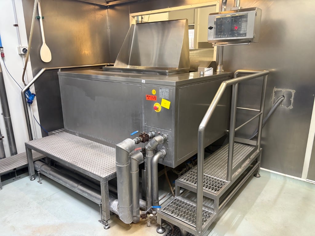 • Single-vat continuous cooker with integrated feed and discharge system.