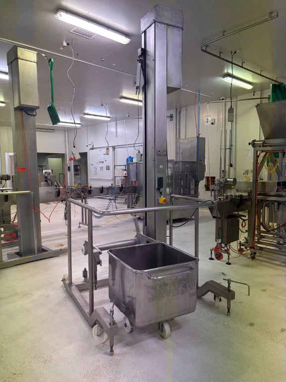 Bin Lifter, Roser Electric Mackie Bin Lifter with Bin. Type: 7572, SN: 1753, MY 2017, 300KG Max Load, W 135cm D 180cm H 335cm