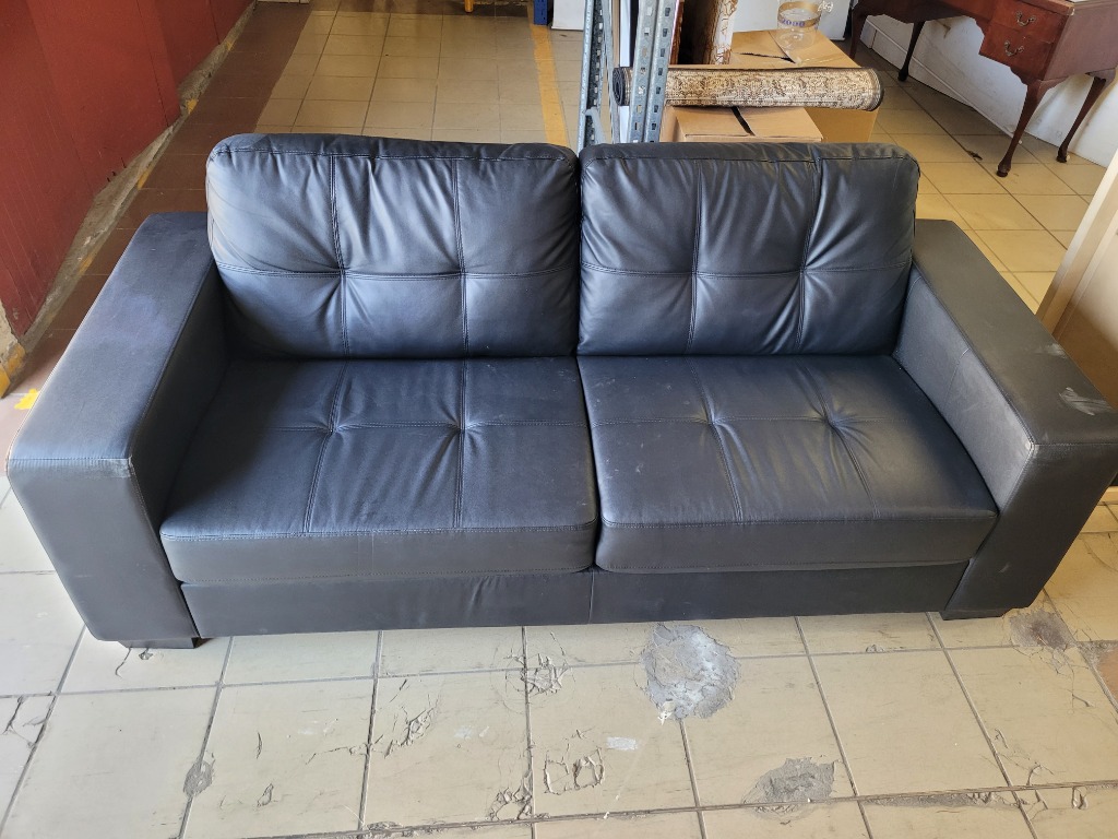 3-Seater Sofa, Leather Style, Black FinishDimensions H:82cm W:85cm D:200cm