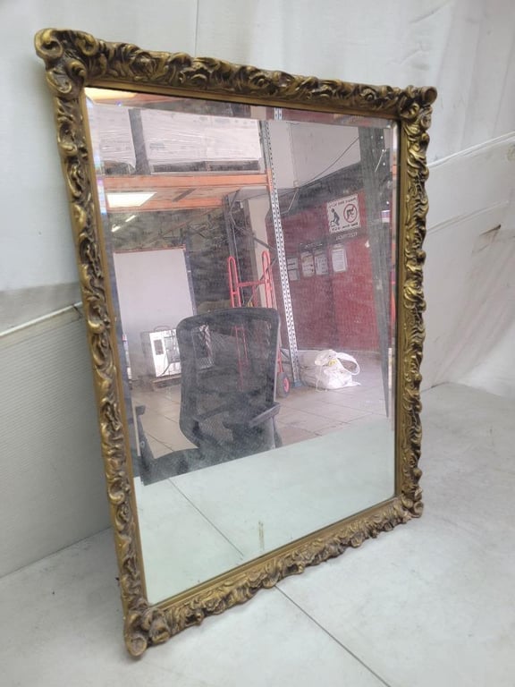 Mirror with Gold-tone wood ornate frame with hanging chain
