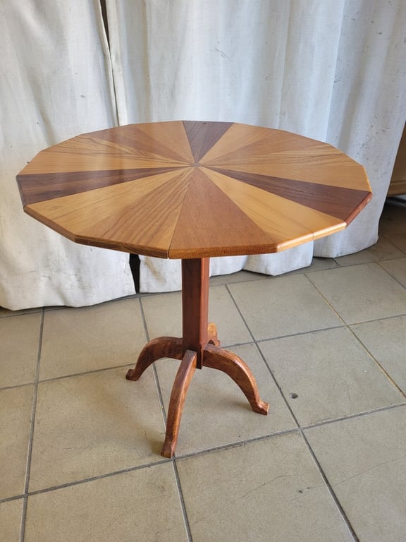 Circular Side Table, Brown Timber FinishDimensions H:62cm W:60cm D:60cm