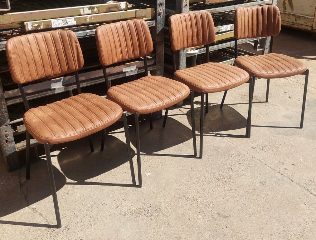 Tan Dining Chairs, Vinyl Leather, Steel Frame, Dimensions: 45cm x 47cm x 82cm Bid per each, must take 4.
