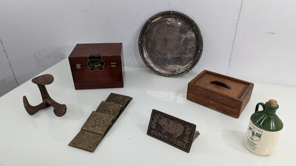 Vintage Style Bundle, Includes Bacon Press, Shoe Horn, Tawny Port Jug and More, Quantity 7