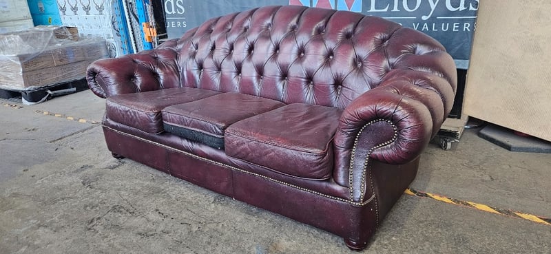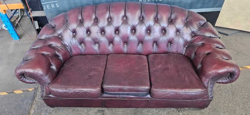 Sofa, Chesterfield Brown 3 Seater Leather Sofa