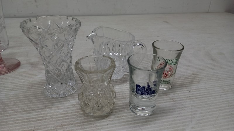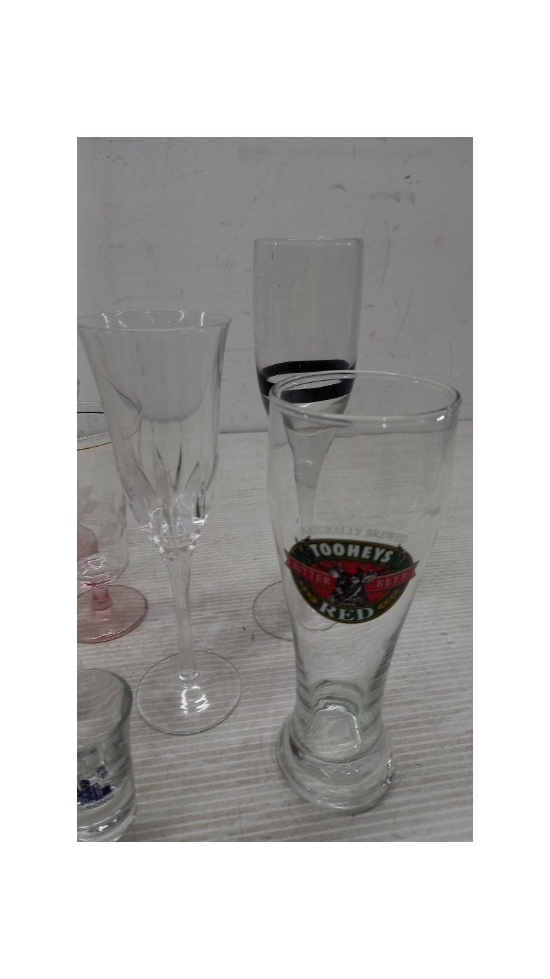 Glassware, assorted Glassware includes beer glass, pouring jugs, wine glasses and moreSold as lot