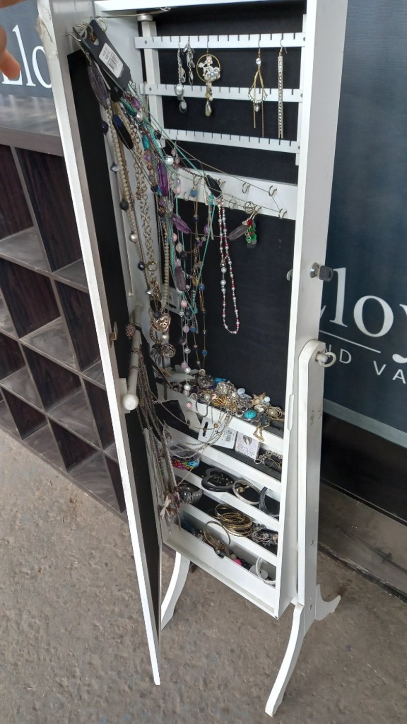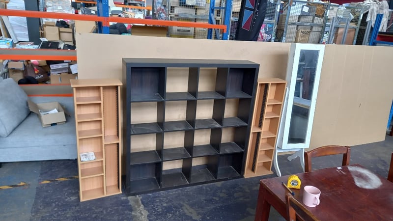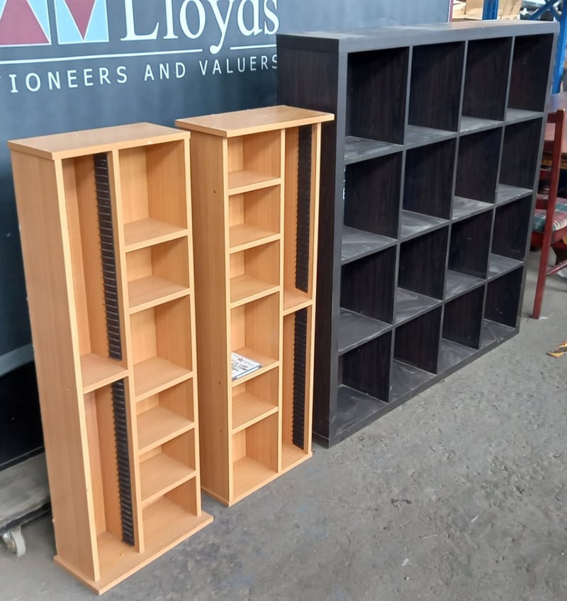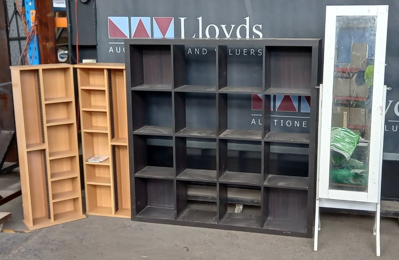 Furniture, Includes shelving units & Mirror, includes two shelves with CD racks, one large Cube shelf, and Mirror with internal storage
