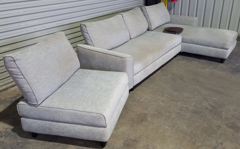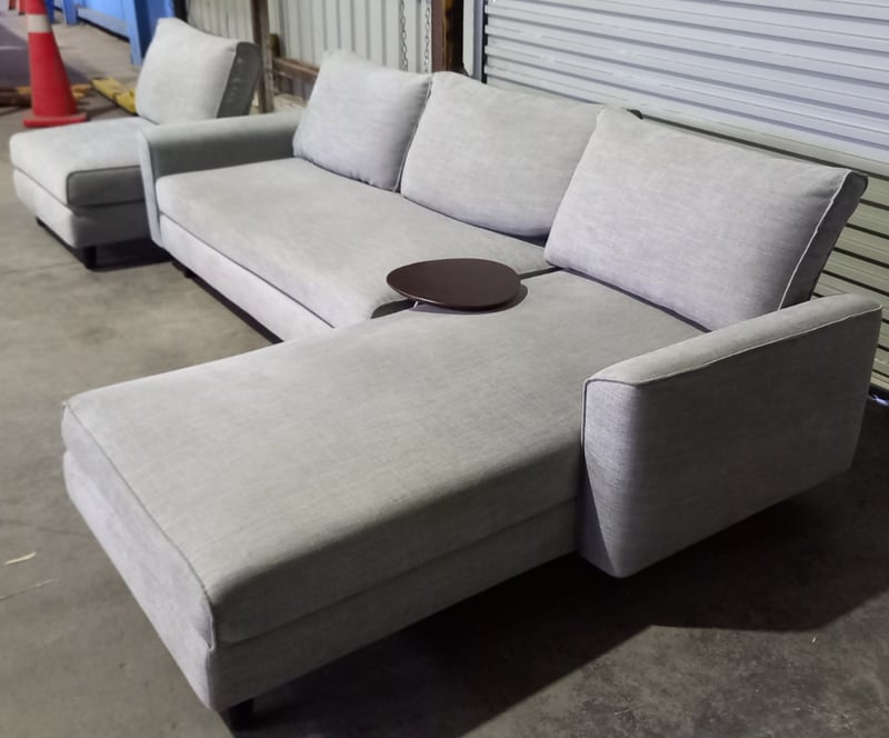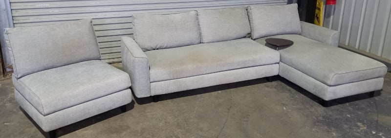 Sofa, King living 3 piece soft unit, with small table attachment, in Gray style