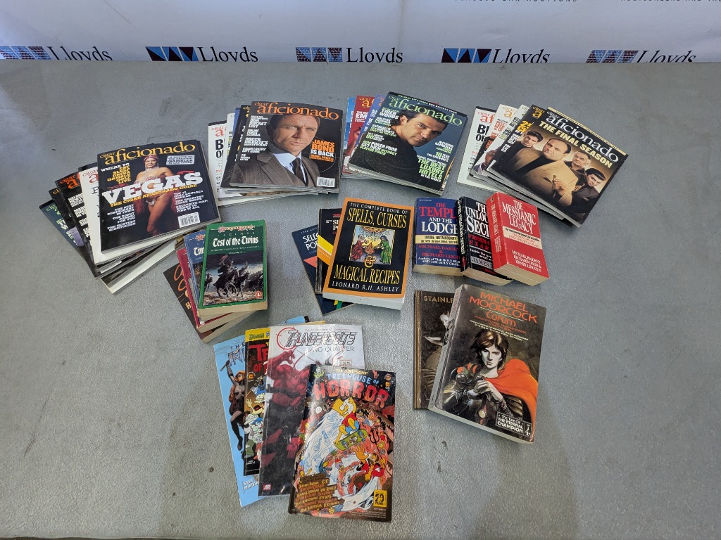 Assorted Special Interest Magazines & Books, Novels & Graphic Novels, Includes Back Issues of Cigar Aficionado, Messianic Legacy, Temple & The Lodge, The Unlocked Secret, The Complete Book of Spells ^ Curses., Dragon Lance Novels, Marvel Thunderbolts, Simpsons