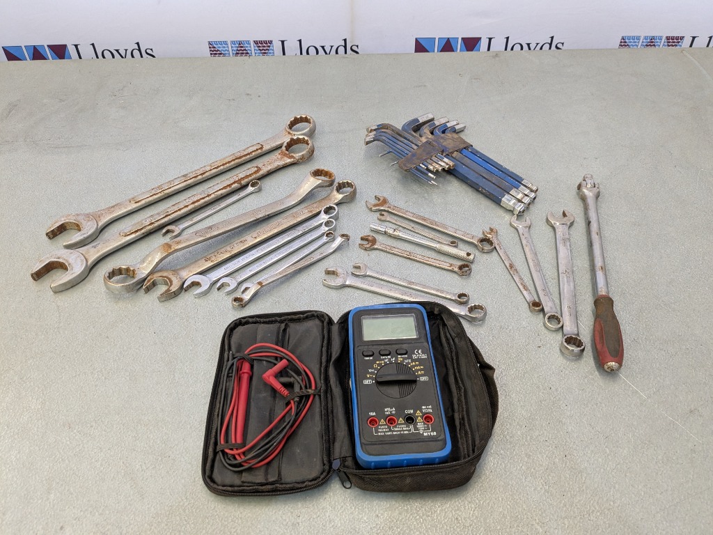 Kincrime Auto Ranging Multimeter & Heavy Duty Sidchrome Spanners, JBS Spanners, Calibre Spanners, Socket Bar + Kinchrome Heavy Duty Alan Key Set, Note: Electrical Items Untested Sold as Lot