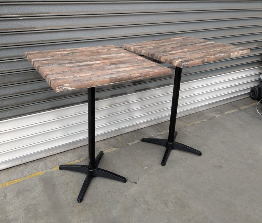 Werzalit resin Bar Table Tops and Base , Distressed Wooden Top and Black Steel Framed Base