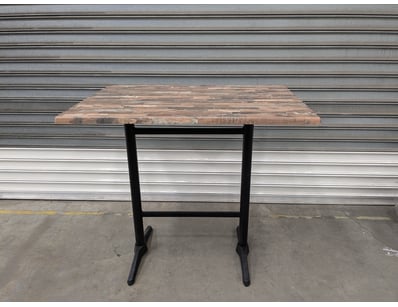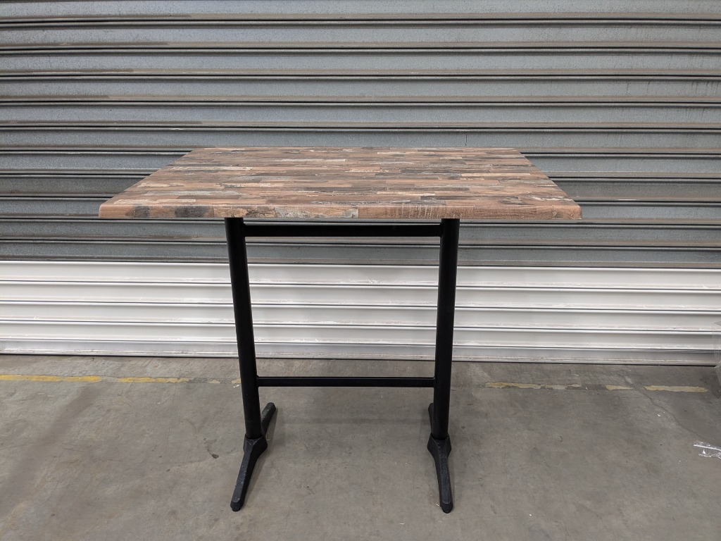 Werzalit resin Bar Table Tops and Base , Distressed Wooden Top and Black Steel Framed Base
