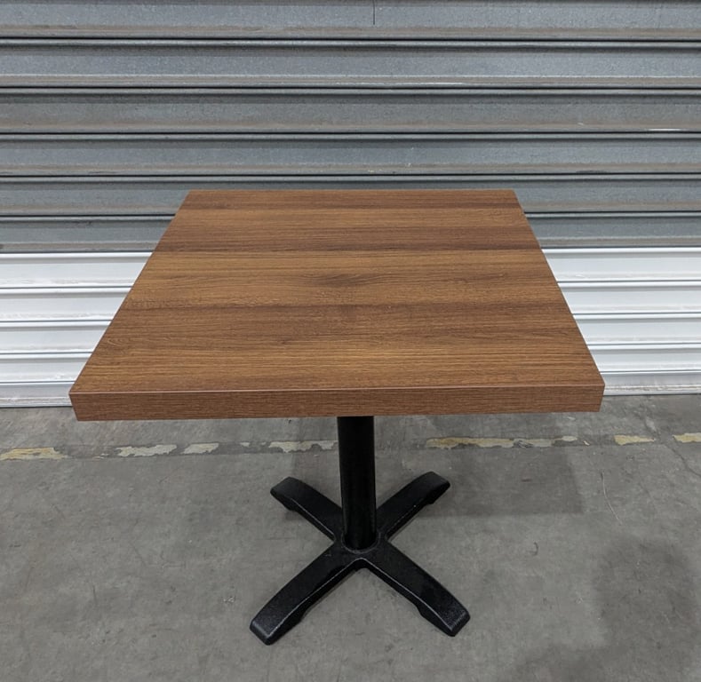 Bistro/Dining Table, Wooden/Walnut Top with Black Metal Pedestal Base