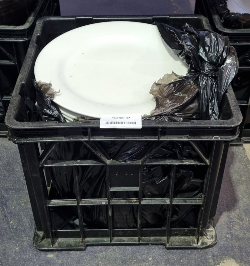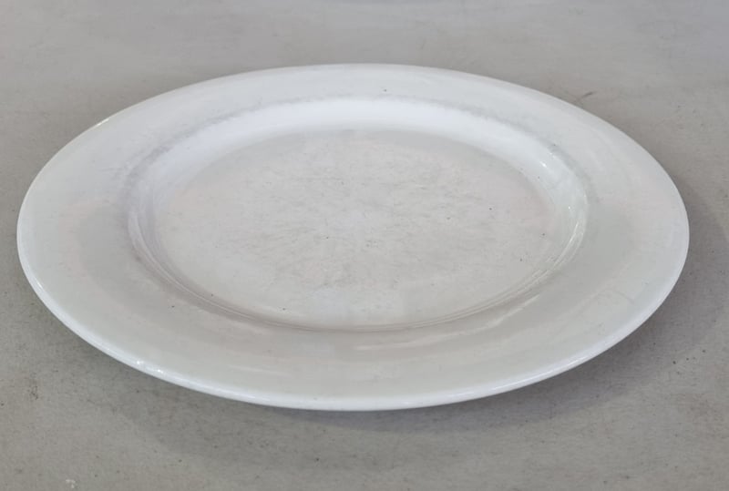 Plates, White Round Dinner Plates, Quantity unknown.