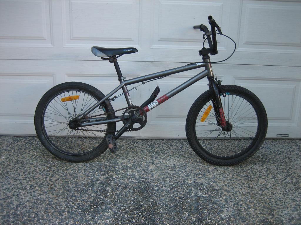BMX Stunt bike Redline, black 20" Aluminium rims. Grey in colour.