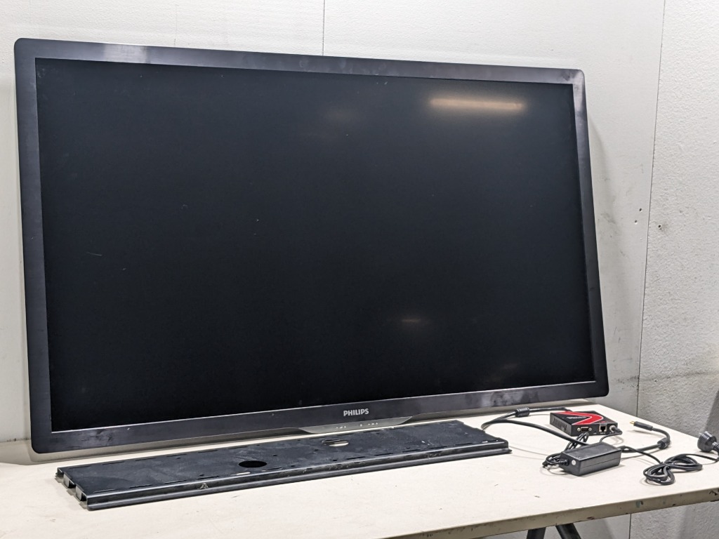 Philips TV 55', power cable included and bracket Model number: 55HFL5573D Dims: H: 75cm x W: 140cm x D: 2cm Sold as lot Note: Untasted and signs of wear and tear