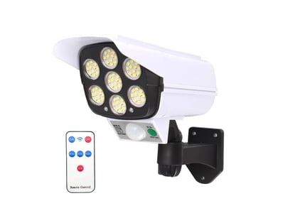Outdoor Solar Sensor Light Remote Control Motion Activation Security Camera Simulator 77 Led Lights Multiple Angle Options 7-10 Hours Work Time Easy Install (NEW IN BOX)