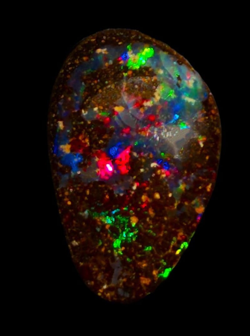6.8 CARATS KOROIT BOULDER OPAL. HAS A BRIGHT RED HEART WITH BLUES AND GREENS. 17X11X4 Condition: Good - Refer Images 0586205+4