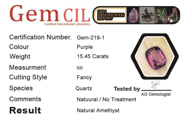 15.45 CARATS NATURAL QUALITY BRAZILIAN AMETHYST 15.45 Carats Natural Quality Brazilian Amethyst Stone = Natural Amethyst Weight = 15.45 Carats Colour = Purple Cut = Fancy Lustre = Excellent Note = Gem Cil, Certified, Precise Custom Cut (Not Commercial) Condition: Good 645399+1