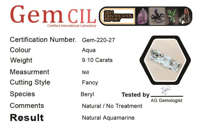 9.10 CARATS NATURAL AQUAMARINE LOT 9.10 Carats Natural Aquamarine Lot Stone = Natural Aquamarine Weight = 9.10 Carats Colour = Pale Aqua Cut = Fancy Note = Gem Cil, Certified Precise Custom Cut (Not Commercial) Condition: Good 0 +77
