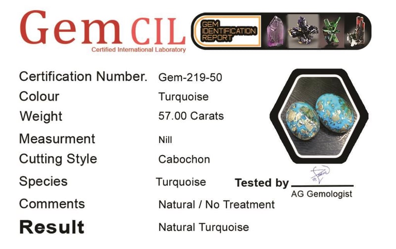 57.00 CARATS NATURAL QUALITY TURQUOISE 57.00 Carats Natural Quality Turquoise Stone = Natural TurquoiseWeight = 57.00 Carats Cut = Cabochon Colour = TurquoiseQuantity = 1Note = Gem Cil, Certified, Condition: Good645399+50
