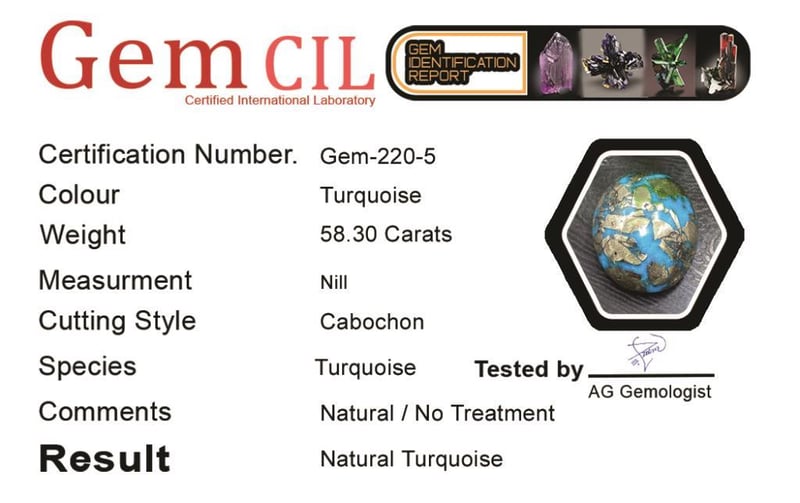 58.30 CARATS NATURAL QUALITY TURQUOISE 58.30 Carats Natural Quality Turquoise Stone = Natural TurquoiseWeight = 58.30 Carats Cut = Cabochon Colour = TurquoiseQuantity = 1Note = Gem Cil, Certified, Condition: Good 0+55