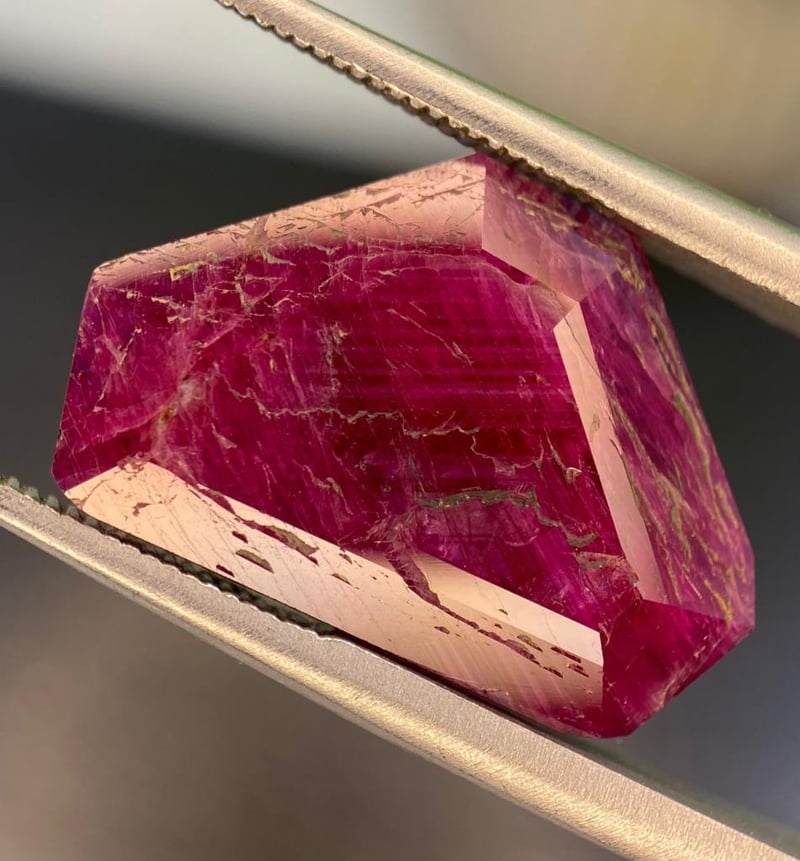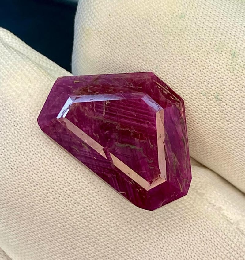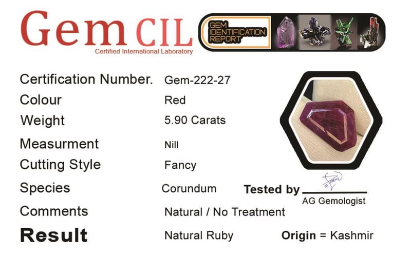 5.90 CARATS NATURAL KASHMIR RUBY 5.90 Carats Natural Kashmir RubyStone = RubyWeight = 5.90 CaratsTreatment = Natural-No Treatment Colour = Reddish-PinkCut = FancyLustre = ExcellentOrigin = Kashmir Note = Gem Cil, Certified, Precise Custom Cut (Not Commercial) Condition: Good - Refer Images 0488335+27