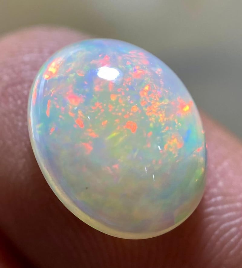 3.95 CARATS NATURAL ELECTRIC FIERY OPAL 3.95 Carats Natural Electric Fiery OpalStone = Natural OpalWeight = 3.95 Carats Cut = Fancy Colour = Play Of Various ColoursCut = Cabochon Treatment = Natural, No TreatmentNote = Picture Taken Under Light Condition: Good - Refer Images 0488335+39
