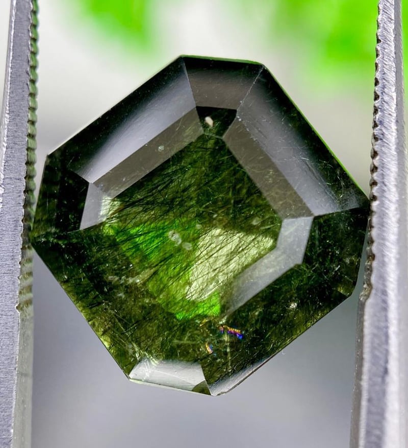 5.15 CARATS NATURAL RARE LOUDGITE PERIDOT 5.15 Carats Natural Rare Loudgite PeridotStone = Natural PeridotWeight = 5.15 CaratsColour = Green / BlackCut = Fancy Inclusion = LoudgiteNote = Gem Cil, Certified, Precise Custom Cut (Not Commercial) Condition: Good - Refer Images 0488335+6