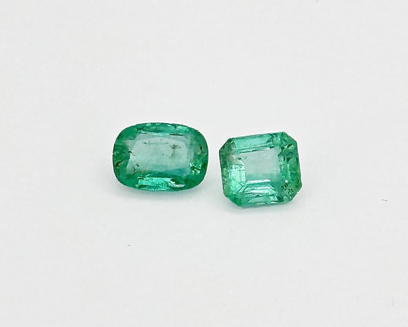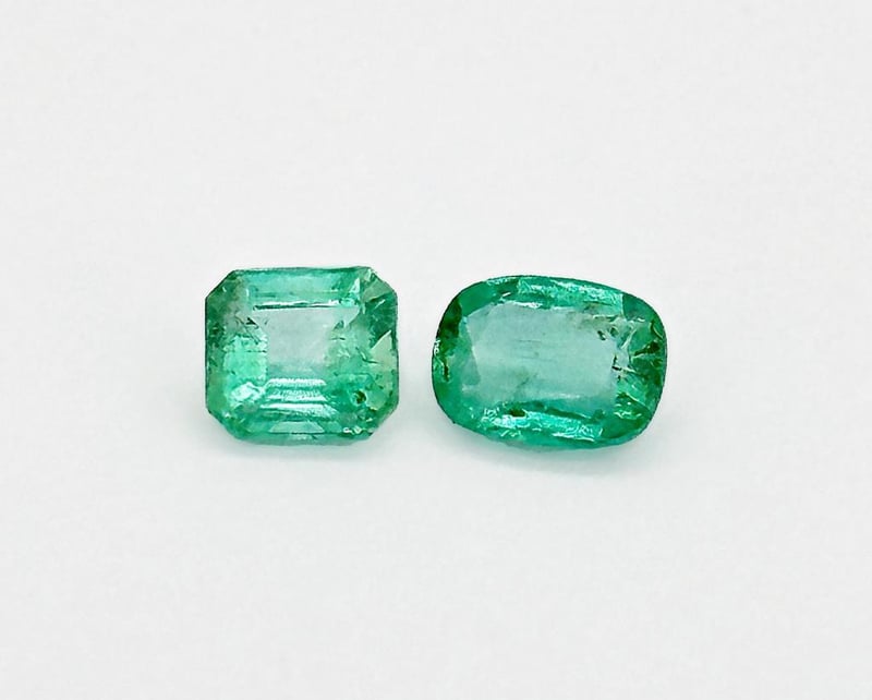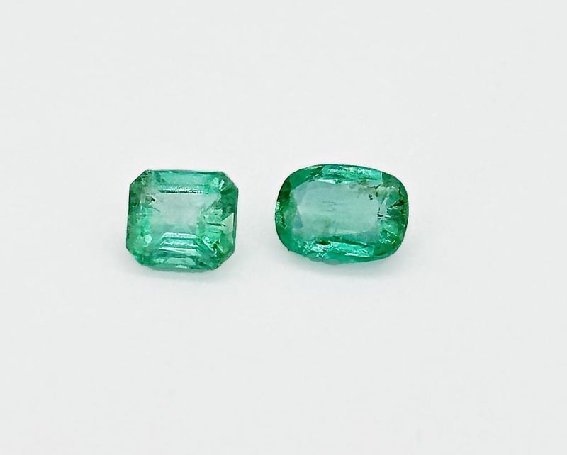 Comments: This Lot Consists Of Two Natural Emeralds Of Mixed Sizes With Cushion And Emerald Cuts. They Exhibit Very Slight Inclusions, With Minor Inclusions Visible Under Magnification. The Stones Have Been Treated With Oiling To Enhance Clarity.