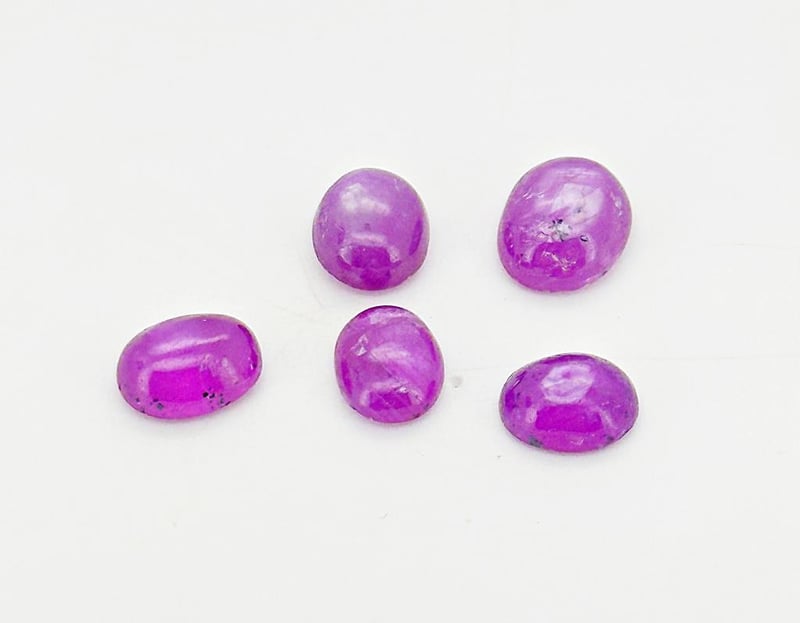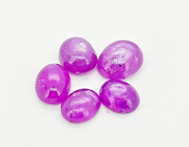 Comments: This Parcel Includes Five Natural Star Rubies Displaying Clear Asterism And Attractive Pinkish-Red Color, Cut As Oval Cabochons. Their Beauty And Unique Optical Phenomena Make Them Desirable For Collector’S And Fine Jewelry Use.