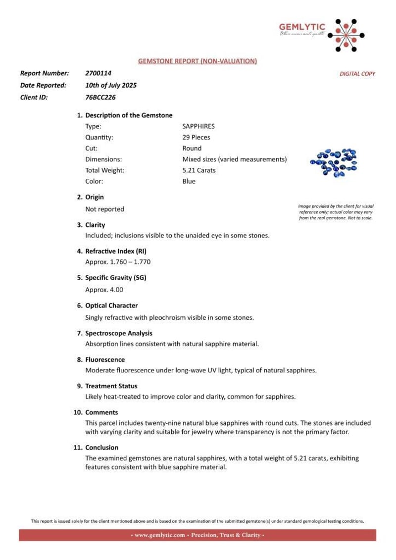 Comments: This Parcel Includes Twenty-Nine Natural Blue Sapphires With Round Cuts. The Stones Are Included With Varying Clarity And Suitable For Jewelry Where Transparency Is Not The Primary Factor.