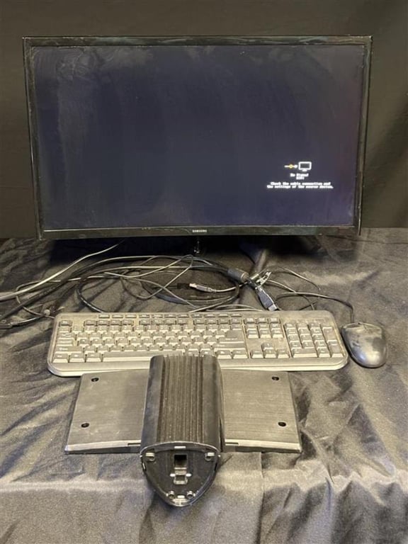 Samsung 24" Curved Monitor – Model S24C360EAE Model Code: LS24C360EAEXXY Serial No: 5N1XH9TYK102487X Features: HDMI and VGA inputs, 24V DC power, sleek curved display, made in Vietnam (2024). Includes: Power and display cables, keyboard, and mouse. Condition: Powers on, display functional.