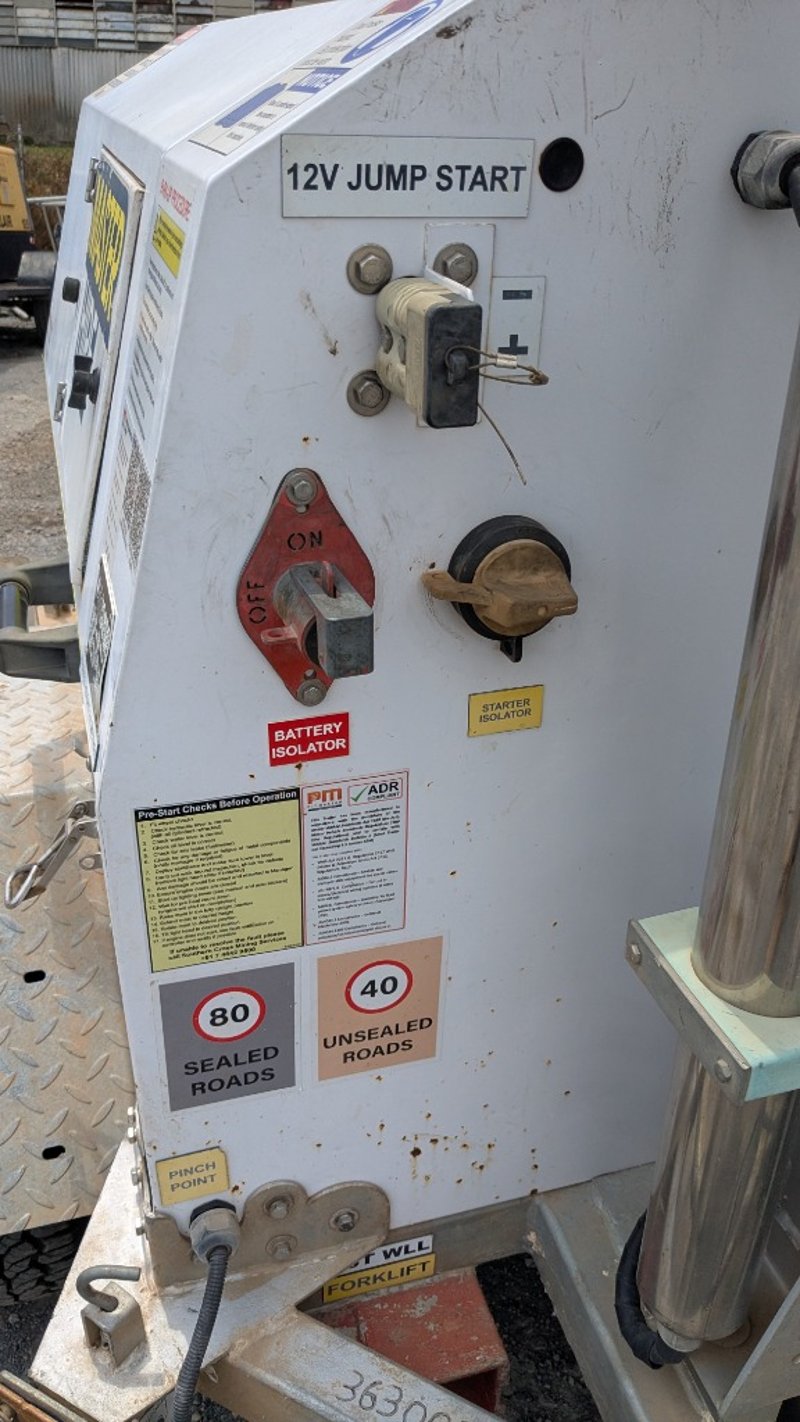 Mine Specification LED Light Tower Brand: Pitmaster Model: 4HTM1500 Vin: 6U9VSS00000173464 Description/Extras: Stabilizing Legs, E Stop, 4 X Lights, Diesel Engine Run Trailer Dimensions: 3200mm (L) x 1600mm(W) NOTE: WORKS OKAY MAST CABLE SECTION BROKEN ONLY RAISES 50 PERCENT. INSPECTIONS HIGHLY RECOMMENDED, BUYER TO PROVIDE OWN LABOUR AND TOOLS FOR SAFE REMOVAL OF ASSET Contact: Mark David - 0437 318 344 or [email protected] Collections must occur Friday 21st of November 8am-3pm , Monday 24th to Wednesday 26th November, 8am - 4pm , NO COLLECTIONS SATURDAY OR SUNDAY