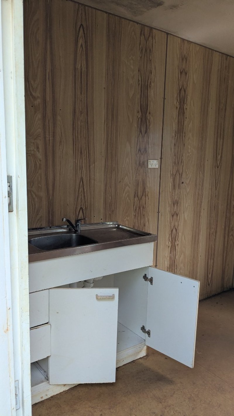 Site Hut, Metal I Beam Base, Air Con, Basin with Tap and Under Sink Storage Dimensions: 3050mm(D) x 6000mm(W) x 2900mm(H) NOTE: RCD INSPECTION, INSPECTIONS HIGHLY RECOMMNED, BUYER TO PROVIDE OWN LABOUR AND TOOLS FOR SAFE REMOVAL OF ASSSET Contact: Mark David - 0437 318 344 or [email protected] Collections must occur Friday 21st of November 8am-3pm , Monday 24th to Wednesday 26th November, 8am - 4pm , NO COLLECTIONS SATURDAY OR SUNDAY