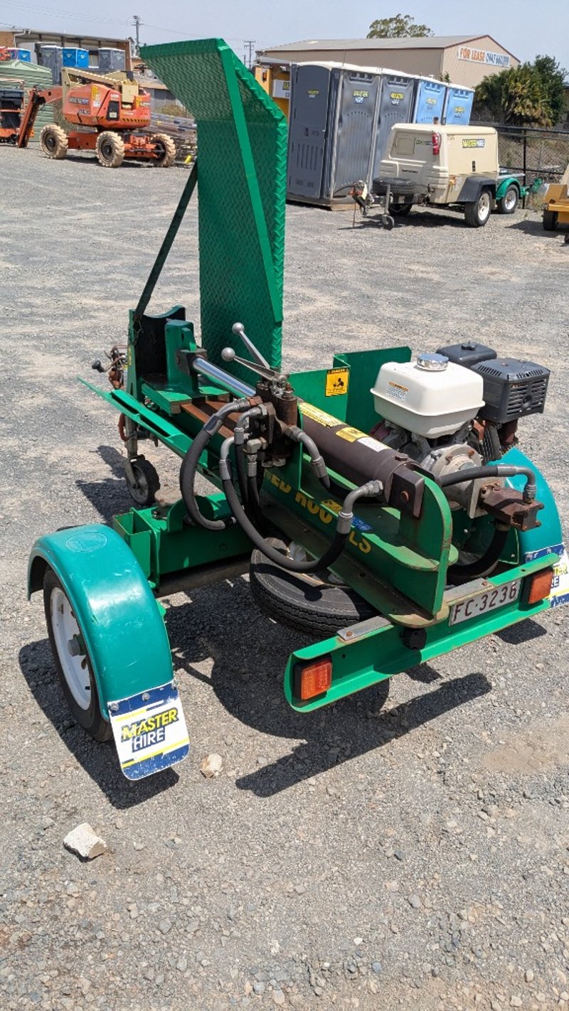 Trailer Mounted Log splitter Brand: Red Roo Model: HLS9 Vin: 6T9T26V86HOATP019 Engine:13 hp Honda GX390 OHV engine Description/ Extras: Splitting force: 26 tones, Splitting width: 500 mm, Cycle time: 9 seconds with auto-return Trailer Dimensions: 2400mm(L) x 1600mm(W) NOTE: Hyd Lever Bracket and Pins Recently Replaced, Inspections Highly Recommend, Buyer to Provide own Labor AND TOOLS FOR SAFE REMOVAL OF ASSET Contact: Mark David - 0437 318 344 or [email protected] Collections must occur Friday 21st of November 8am-3pm , Monday 24th to Wednesday 26th November, 8am - 4pm , NO COLLECTIONS SATURDAY OR SUNDAY