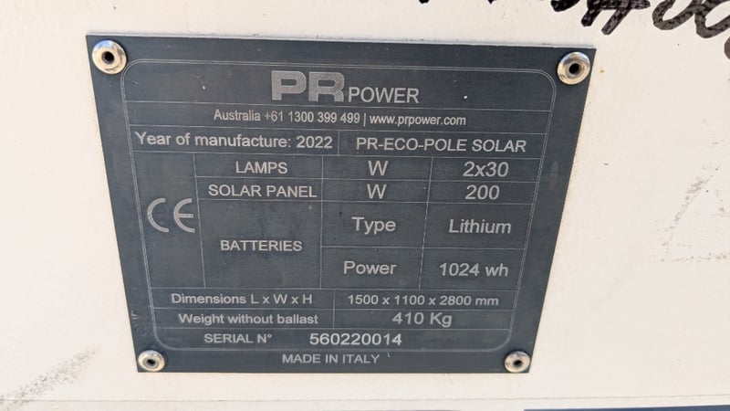 LED CUBE FLOOD LIGHT SMALL SOLAR Brand: R POWER Model:PR-POLE SOLAR Serial No: 560220014 Date of Manufacture: 2022 Description/ Extras: Lithium Batteries, Lamps 2x 30, solar Panel 200 NOTE:REQUIRES NEW BATTERIES AND CONTROLLER, INSPECTIONS HIGHLY RECOMMENDED, BUYER TO PROVIDE OWN LABOUR AND TOOLS FOR SAFE REMOVAL OF ASSET Contact: Mark David - 0437 318 344 or [email protected] Collections must occur Friday 21st of November 8am-3pm , Monday 24th to Wednesday 26th November, 8am - 4pm , NO COLLECTIONS SATURDAY OR SUNDAY