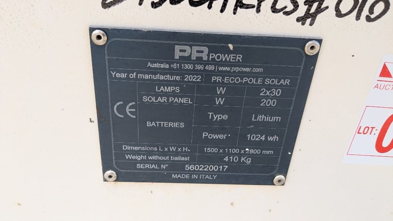 LED CUBE FLOOD LIGHT SMALL SOLARBrand: R POWER Model:PR-POLE SOLARSerial No: 560220017Date of Manufacture: 2022Description/ Extras: Lithium Batteries, Lamps 2x 30, solar Panel 200NOTE:REQUIRES NEW BATTERIES AND CONTROLLER, INSPECTIONS HIGHLY RECOMMENDED, BUYER TO PROVIDE OWN LABOUR AND TOOLS FOR SAFE REMOVAL OF ASSET Contact: Mark David - 0437 318 344 or [email protected] Collections must occur Friday 21st of November 8am-3pm , Monday 24th to Wednesday 26th November, 8am - 4pm , NO COLLECTIONS SATURDAY OR SUNDAY