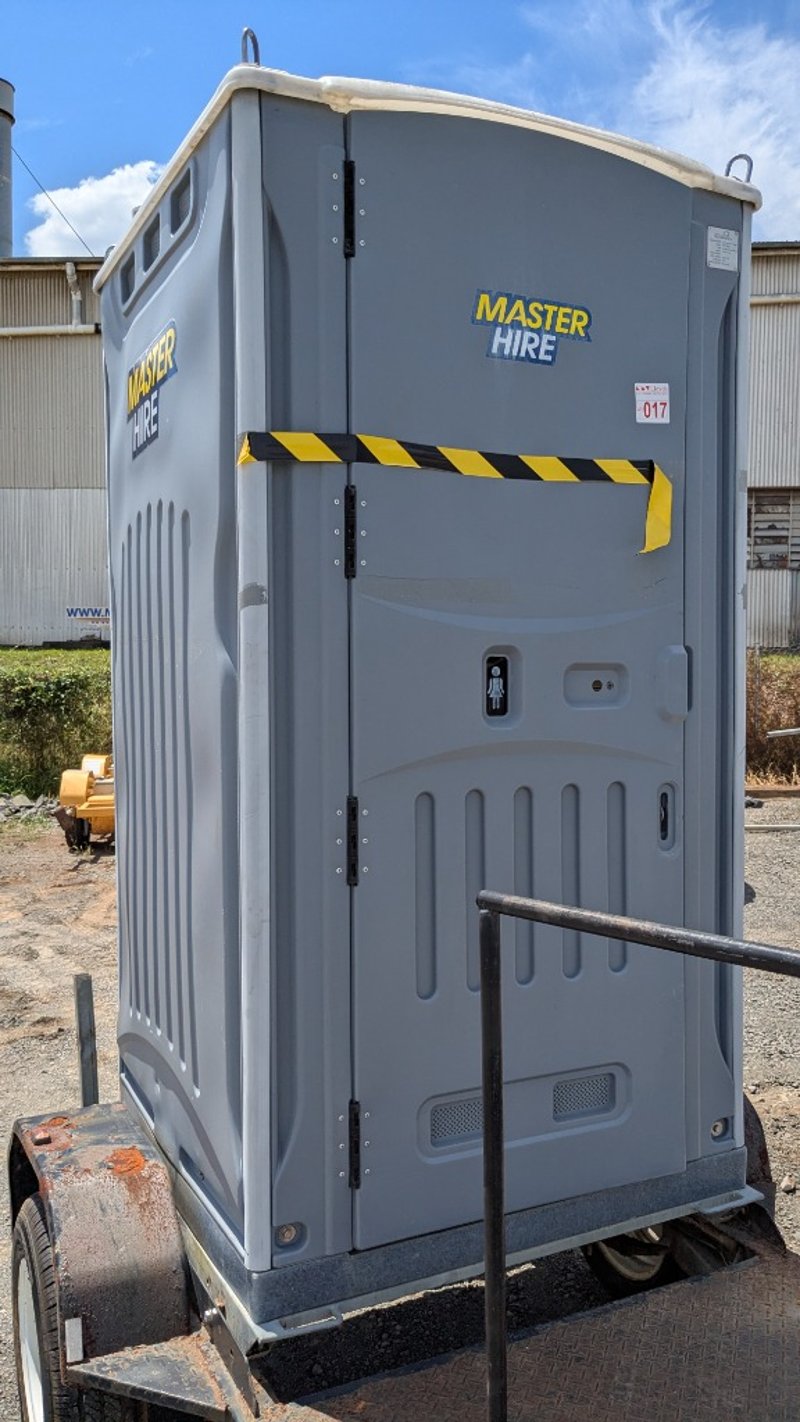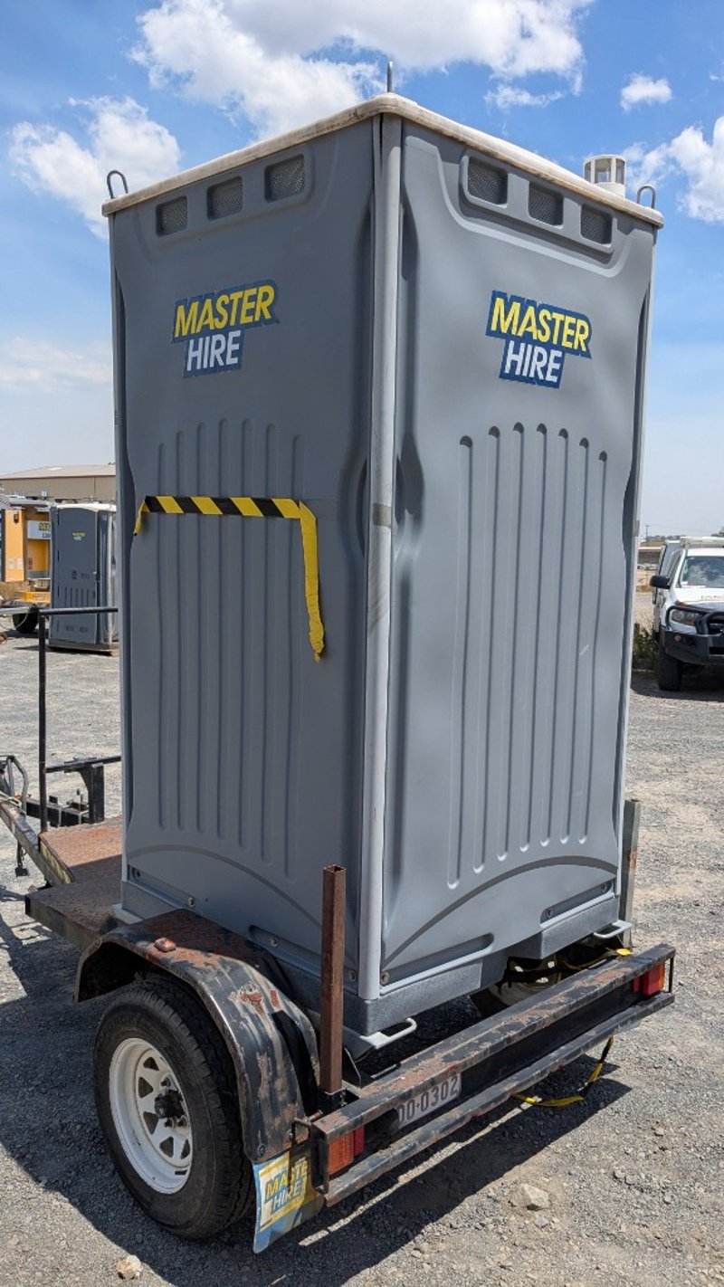 Mobile toilet trailer Brand: JIMBOOMBA TRAIL Model: J1MB BT VIN:6K9J1MBBTDJ019159 Description/ Extras: Leaf Spring Suspension, one Adult Portable Toilet NOTE: RUST EVIDENT, INSPECTIONS HIGHLY RECOMMENDED, BUYER TO PROVIDE OWN LABOUR AND TOOLS FOR SAFE REMOVAL OF ASSET Contact: Mark David - 0437 318 344 or [email protected] Collections must occur Friday 21st of November 8am-3pm , Monday 24th to Wednesday 26th November, 8am - 4pm , NO COLLECTIONS SATURDAY OR SUNDAY