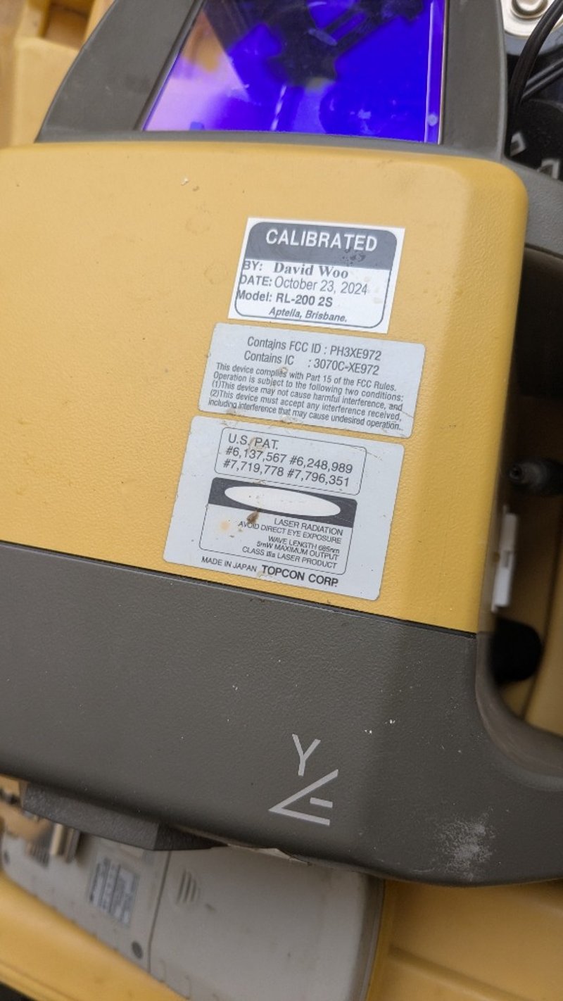 Rotating laser, Rl -200 2s, Topcon, includes Remote, hard carry caseSOLD AS LOT NOTE:INSPECTIONS HIGHLY RECOMMENDED, BUYER TO PROVIDE OWN LABOUR AND TOOLS FOR SAFE REMOVAL OF ASSET Contact: Mark David - 0437 318 344 or [email protected] Collections must occur Friday 21st of November 8am-3pm , Monday 24th to Wednesday 26th November, 8am - 4pm , NO COLLECTIONS SATURDAY OR SUNDAY