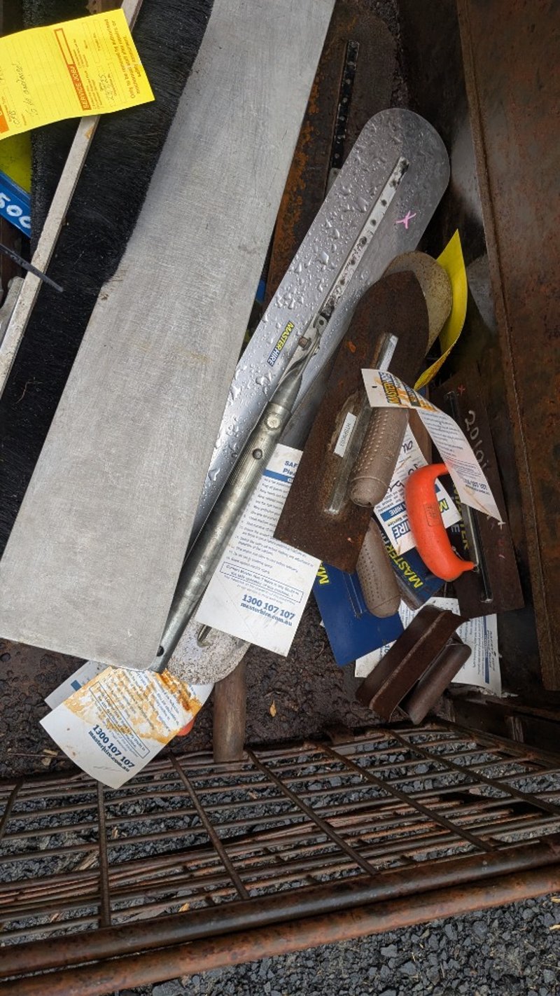 Assorted Hardware Items, Includes Booms, Concrete Hand Smoother and more, Various Sizes